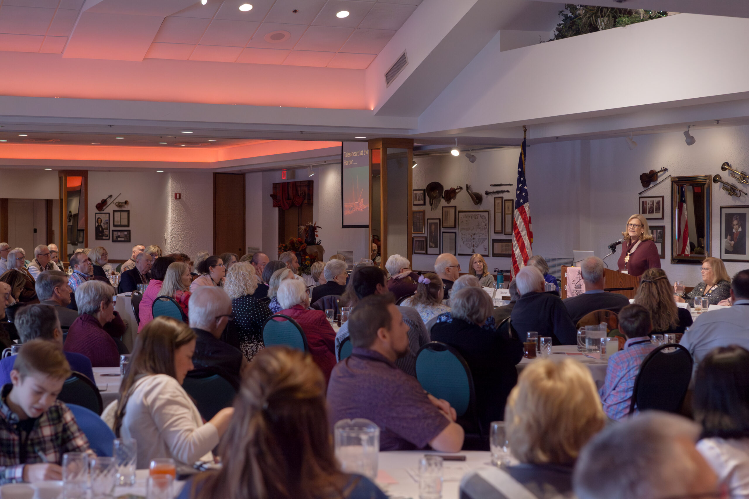 The Michigan Mayflower Society held their Annual Compact Meeting at the Bavarian Inn in Frankenmuth. This annual event is in remembrance of the landing of the Mayflower in November, 1620. The featured speaker was Lisa Pennington, Governor General of the General Society of Mayflower Descendants in Plymouth. This meeting, held in Frankenmuth, was very well attended, with 171 members and guests present.